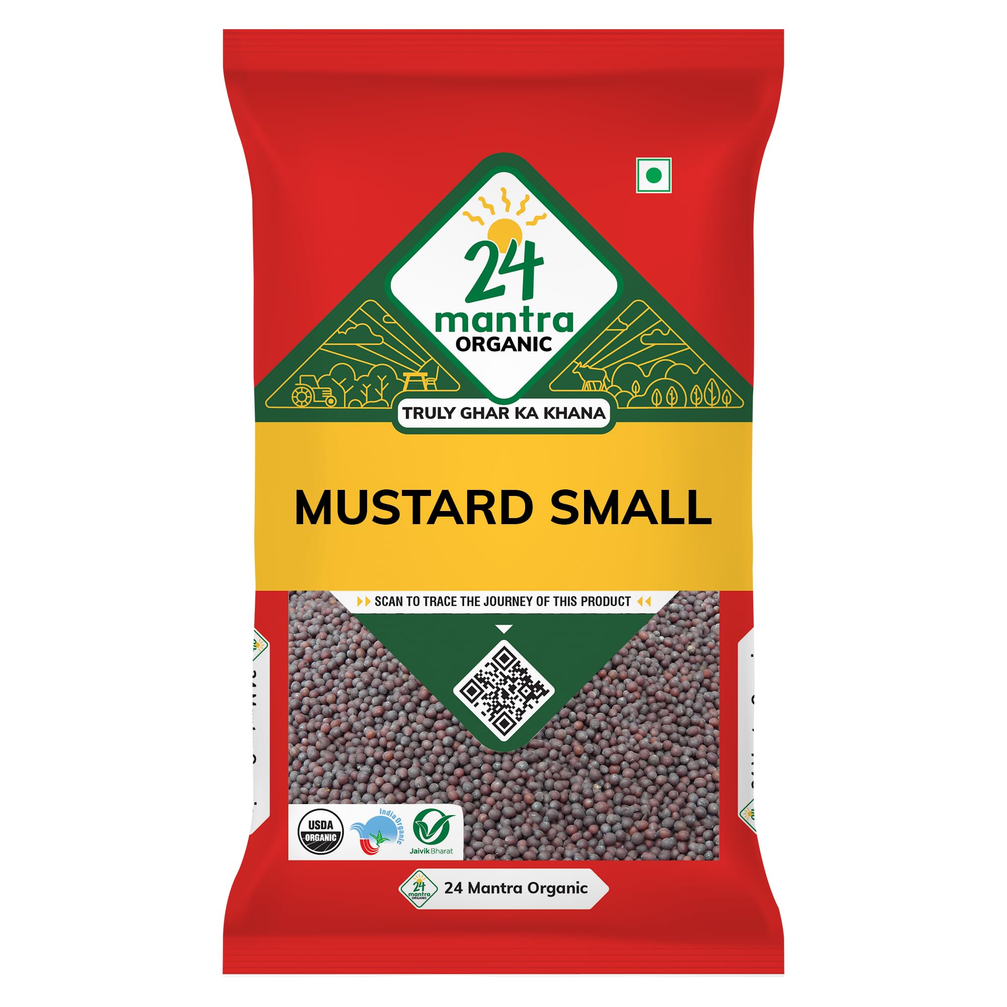 24 Mantra Organic Mustard Seeds Big/Sarson k beenj/Ava Ginjalu - 100gms | Pack o