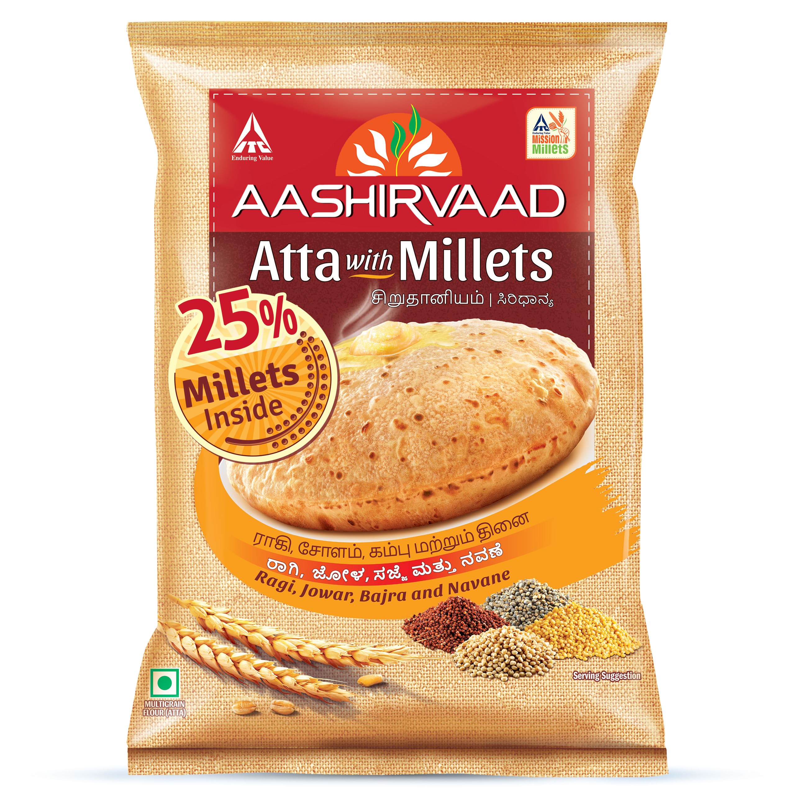 Aashirvaad Atta with Millets, 5kg pack | Nutrient-Rich & High Fibre Atta | 25% M