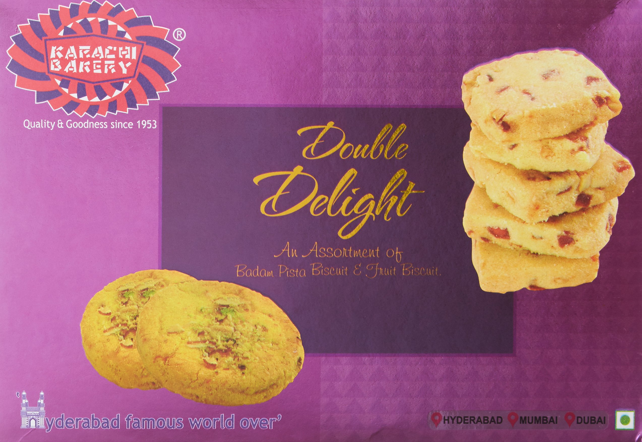 Karachi Bakery Double Delight Fruit Biscuit with Badam and Pista, 400g