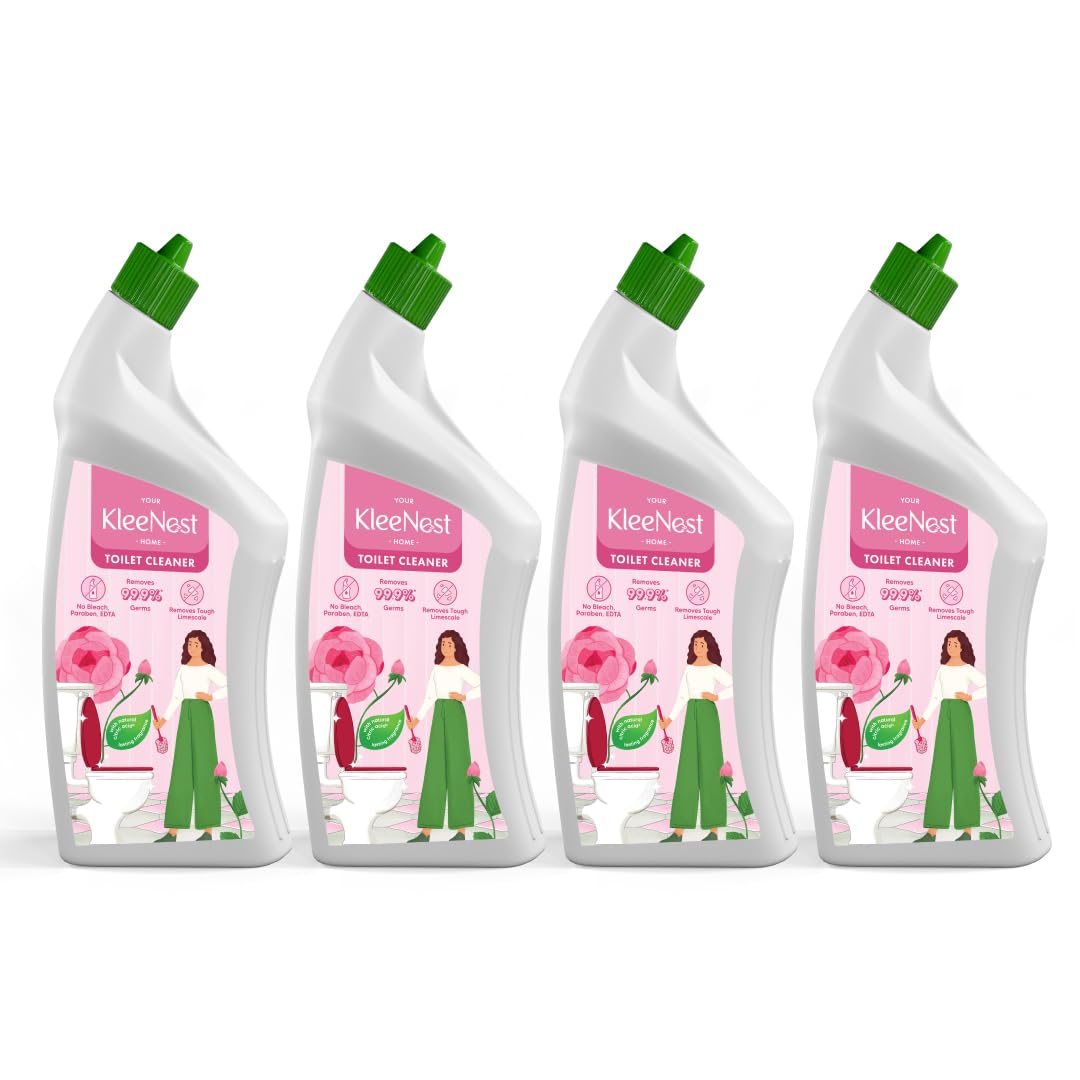 Kleenest Advanced Toilet Cleaner Liquid, Rose ? 1 litre (Pack of 4)| Thick Formu